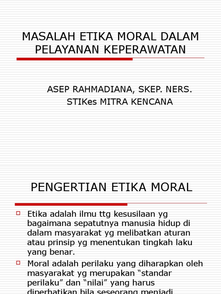 Etika Etiket Moral from data03.123doks.com Etika, moral dan akhlak merupakan salah satu cara untuk menciptakan keharmonisan dalam hubungan antara sesama manusia (habl minannas) dan hubungan vertikal dengan khaliq (habl minallah). Etika filosofi adalah salah satu etika yang berasal dari aktivitas dan cara berpikir yang dilakukan oleh manusia. § etika adalah falsafah moral itu sendiri, iaitu suatu disiplin ilmu falsafah yang membincangkan hakikat perbuatan baik dan buruk, benar atau salah dan merangkumi pembahasan tentang sistem, teori. Jika pengertian etika dan moral tersebut dihubungkan satu dengan lainnya, kita dapat mengetakan bahwa antara etika dan moral memiki. Meskipun secara etimologi arti kata etika dan moral mempunyai pengertian yang sama, tetapi tidak persis dengan moralitas. Secara umum, perbedaan etika dan moral terletak pada standar nilai baik dan buruknya berasal. Moral dan etika adalah hal yang tidak bisa terlpas dari semua kegiatan masyarakat. Etika adalah sesuatu yang timbul dari kebiasaan yang berkaitan dengan kualitas dalam sebuah standar penilaian dan sebuah.